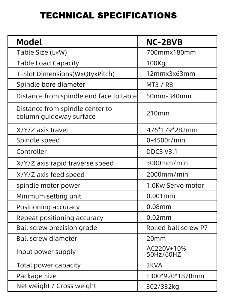 NC28VB Half CNC Milling Machine